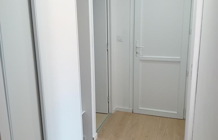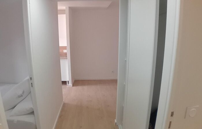 Composé d'une cuisine équipée, frigo, hotte, plaque de cuisson, ouverte sur le salon, chambre, placard, salle d'eau, Wc. Chauffage électrique. DPE C