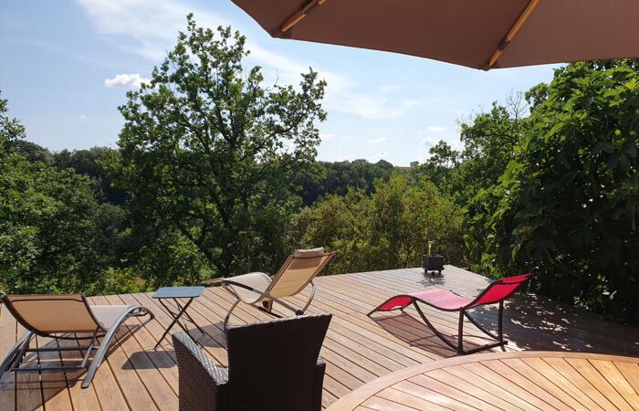 Proche de Gaillac, Dans le Triangle d'Or, Magnifique propriété Nichée au milieu de presque 10 hectares de Bois et Prairie. Maison principale de 9 pièces, Salon -Séjour avec une Cheminée majestueuse, Cuisine contemporaine ouverte sur la pièce de vie, bureau, Salon TV, Quatre chambres, deux salles d'eau et une grande pièce à aménager à son goût, actuellement une Pièce de musique et un Gîte attenant avec sa Pièce de vie , son coin cuisine et deux chambres avec chacune une salle d'eau/wc, Rénovation de Qualité, Chauffage pompe à chaleur. Piscine sécurisée, Pigeonnier. Garage - Atelier.Très bel Environnement, Source et Puits (réserve d'eau). Pour les amoureux du calme et de la nature, Pour un projet Touristique ou Évènementiel. Commerces et commodités proches.