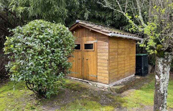 Terrasse couverte, Jardin agréable, Terrain soigné, parfait pour la détente, agrémenté d'un abri de jardin.