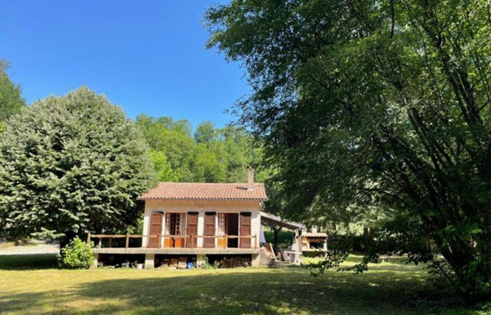 De plain pied sur un terrain de 3000m², arboré avec d'imposants sapins en bordure de ruisseau - idéal pour loisirs pèche et autres - SH de 76 m² avec combles aménageables en partie ,composée de 2 chambres, une salle d'eau, salon salle à manger avec une belle cheminée. Utilement complété par un garage, une terrasse de 50 m², un appentis et une petite dépendance. A saisir.